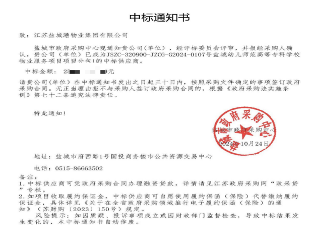 金秋十月,碩果累累,鹽城港物業(yè)公司成功中標鹽城幼兒師范高等專科學校物業(yè)服務項目,在鹽城大市區(qū)外拓市場中實現(xiàn)新突破!項目新增“宿管”“安全員”等服務內(nèi)容,總服務面積12余萬平方米,中標金額200余萬元,為在管項目領(lǐng)域再添新業(yè)績!