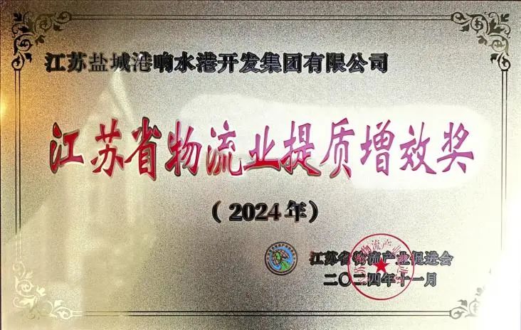 近日,在“十五五”江蘇機遇,供應鏈賦能未來——2024年江蘇省物流產業促進會年會上,鹽城港保稅物流中心與響水港開發集團分別榮獲“2024年江蘇省物流行業標桿獎”“2024年江蘇省物流提質增效獎”。