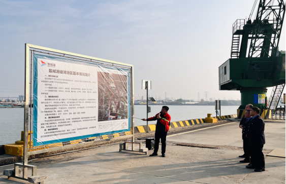 活動開始,全體黨員參觀了建湖港區及鐵路貨場,深入了解了基礎設施建設和運營情況。在建湖港相關負責同志的介紹下,對港區的現代化管理流程和鐵路貨場的高效作業有了更加直觀的認識。