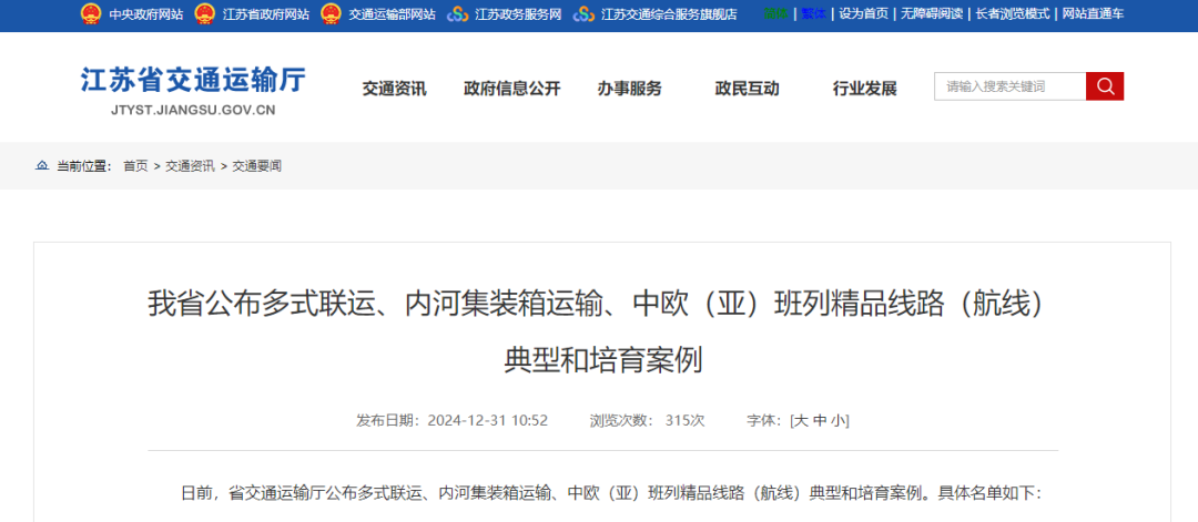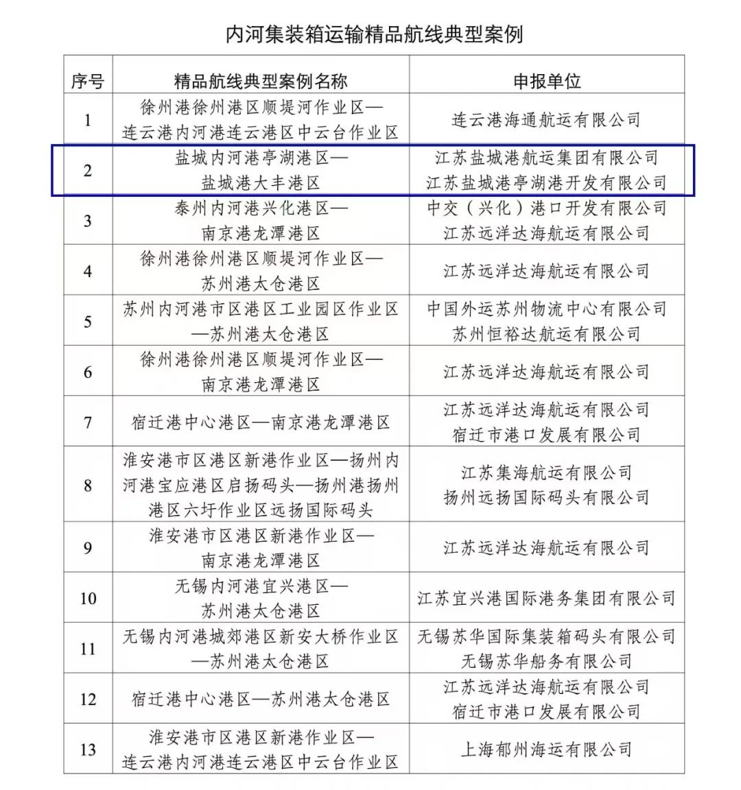近日,省交通運輸廳發布《內河集裝箱運輸精品航線典型案例》,航運集團自營的鹽城內河港亭湖港區—鹽城港大豐港區內河集裝箱精品航線憑借出色的運營表現和創新舉措,入選全省內河集裝箱運輸精品航線典型案例。