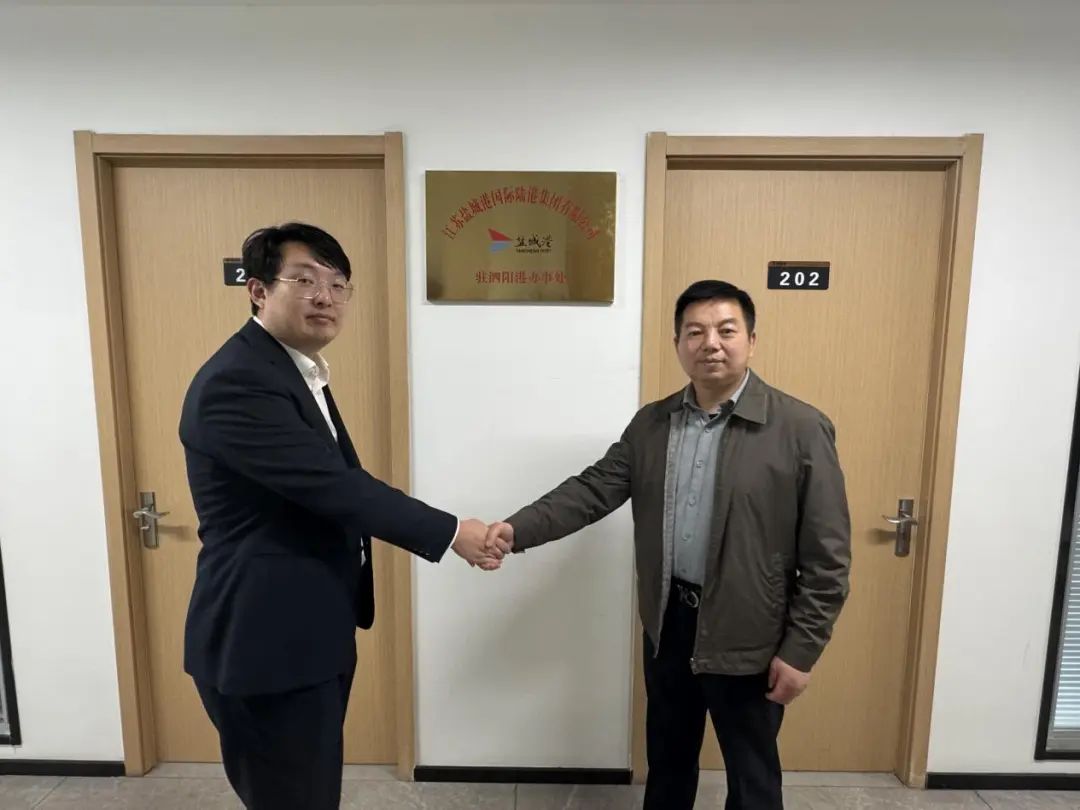 辦事處揭牌儀式上,雙方就兩港之間的業(yè)務(wù)合作進行了深入洽談,并對臺兒莊港至亭湖港區(qū)石灰石“散改集、陸改水”項目達成一致合作意向。