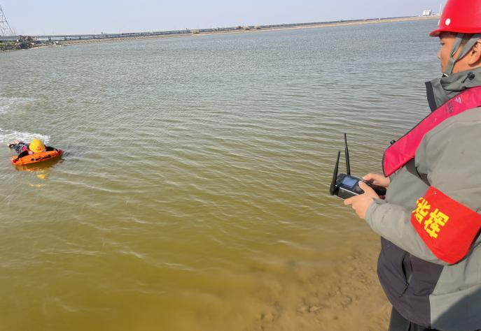 本次演練與港航勘測設計公司聯合進行,模擬臨水測繪作業人員意外落水的突發事件。在預設救援力量不足的條件下,應急指揮中心迅速啟動三級響應機制,組織應急救援組、警戒保衛組、后勤保障組、醫療救護組協同處置。其中,項目應急物資庫配備的遙控救生船首次投入實戰應用,成為本次演練的最大亮點。