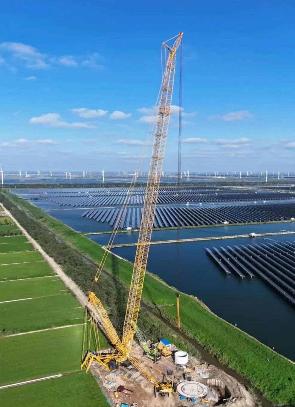 近日,在鹽城港農業集團鹽農華豐農業境內,經過3個小時的安裝、調試,隨著最后一支葉片在155米高空完美“轉體”與輪轂精準對接,我國自主研發生產的首臺16.2兆瓦陸上單機容量最大發電機組順利安裝完成。