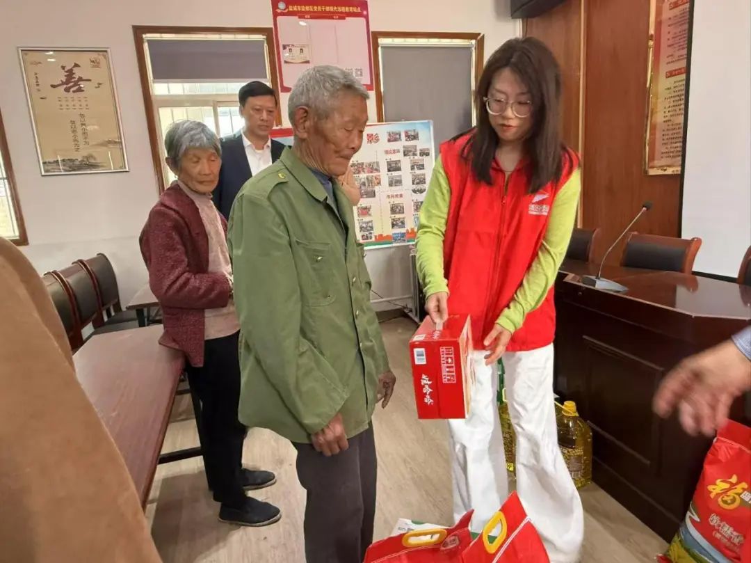 當(dāng)員工們將大米、食用油、牛奶、保暖用品等生活物資逐一遞到老人手中時(shí),現(xiàn)場(chǎng)響起了陣陣掌聲。