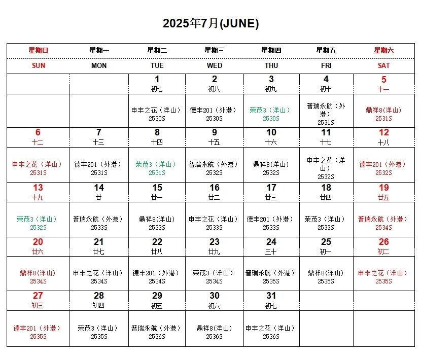 “滬鹽專(zhuān)線(xiàn)”7月船期表已經(jīng)新鮮出爐!