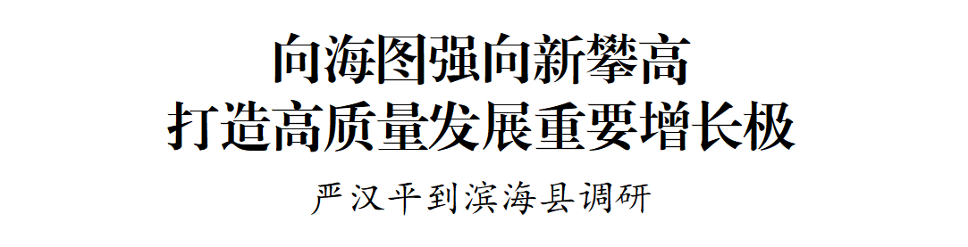 8月30日,市委副書記、代市長嚴漢平到濱海縣調研,強調要深入學習貫徹習近平總書記對江蘇工作重要講話精神,牢牢把握高質量發展首要任務,搶抓江蘇沿海發展等戰略機遇,堅定向海圖強,奮力向新攀高,加快打造全市高質量發展重要增長極。
