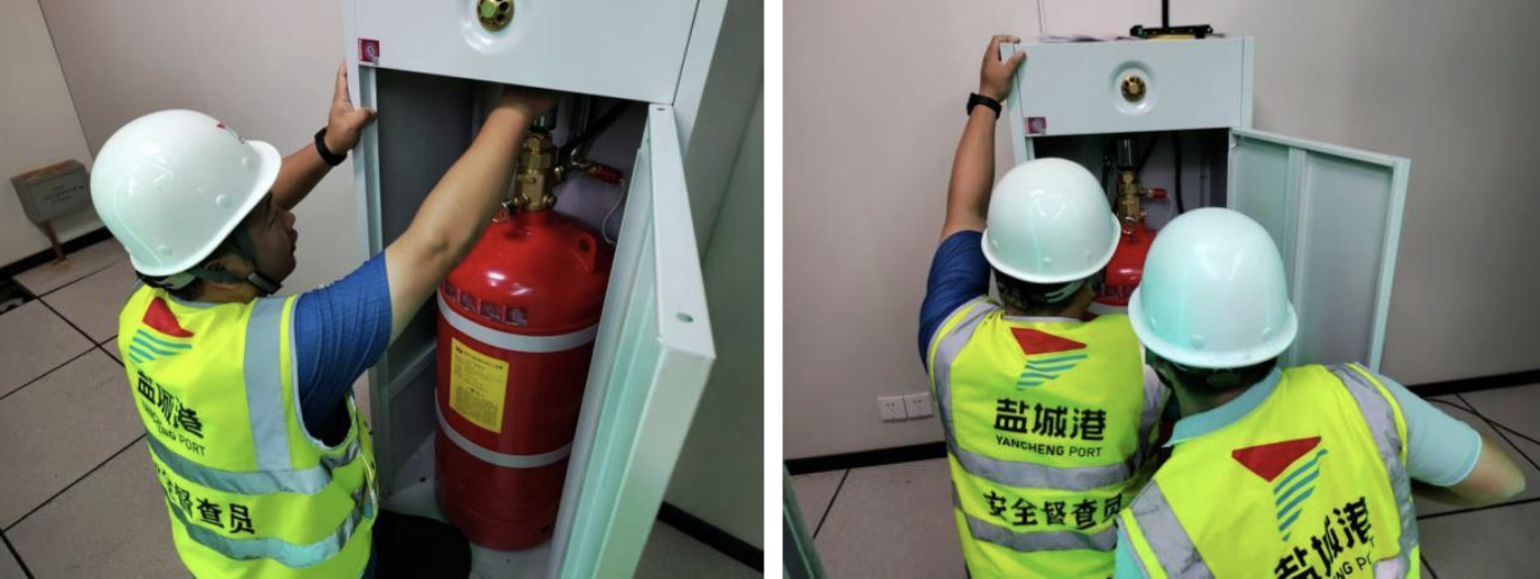 本次檢查深度融合“人防+技防”雙重手段,檢查小組運用紅外掃描儀、壓力傳感器檢測儀等先進設(shè)備,對滅火器、消防栓、煙霧報警器等關(guān)鍵設(shè)施進行了系統(tǒng)性檢測。在碼頭現(xiàn)場,檢查組重點查驗了門機、微機房柜及相關(guān)電氣設(shè)備的自動滅火系統(tǒng),通過模擬火災(zāi)信號全面測試系統(tǒng)響應(yīng)速度,確?;鹎榘l(fā)生時能夠迅速響應(yīng)。在物流園區(qū),針對倉庫電氣線路和防爆設(shè)備開展了地毯式排查,借助熱成像測溫技術(shù)精準識別潛在過熱風(fēng)險,堅決杜絕設(shè)備“帶病運行”。