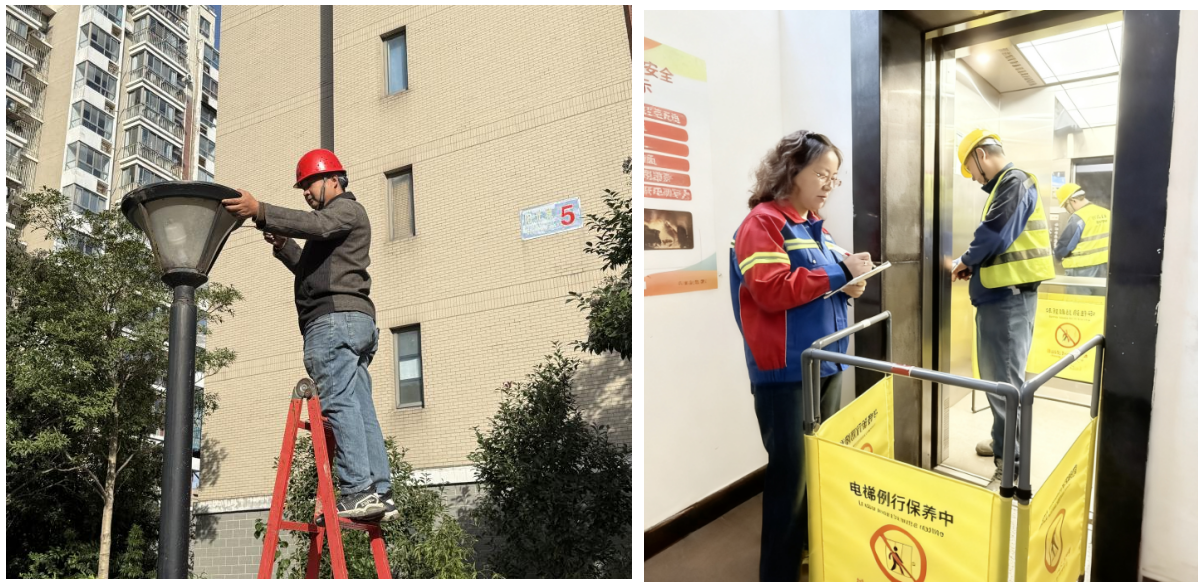 在完成37部電梯深度維保后,大豐城區項目的電梯故障報修率大幅下降。與此同時,她帶領團隊同步推進小區基礎設施改造,更換路燈200多盞、修復路面180余平。為減少施工對業主生活的影響,她帶領團隊推行“錯峰施工+溫情告知”模式,對施工區域進行規范圍擋并加強保潔管理,有效保障了業主生活秩序。