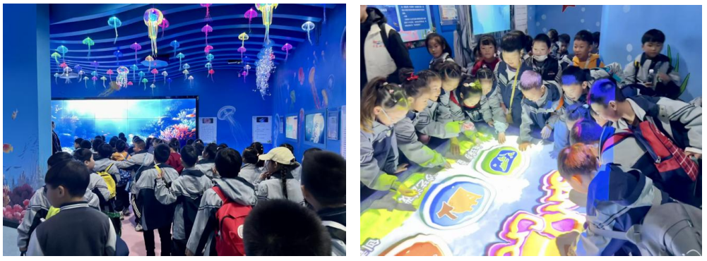 通過AR互動、立體投影與4D傳感系統,孩子們仿佛伸手可觸海洋的脈搏。這種融合科技的情景體驗,不僅生動還原海洋生態,更在虛實交織中點燃探索的熱情。