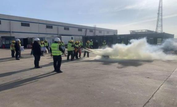 鹽港物業公司則聯合集團內部跨境電商、保安公司等兄弟單位,開展多場景聯合演練。在莎士比亞跨境電商產業園,模擬工作人員觸電場景,應急搶險小組迅速切斷電源、設置警戒區,醫療救護組同步開展心肺復蘇,在8分鐘內完成險情處置與人員救援;在危化品運輸車輛專用停放區,針對車輛故障引發的危險品起火,消防隊啟用干粉滅火器、消防水炮等器材,15分鐘內撲滅“火情”并控制泄漏風險;在星湖花園小區,模擬居民樓電器短路起火,物業應急團隊按“先控制、后消滅”原則滅火,疏散引導組逐戶引導居民有序撤離,全程分工明確、響應迅速。港灣開發建設集團以典型案例為指引,組織作業現場消防滅火應急演練,演練過程指令清晰、協作有序,有效提升了施工人員應急處置能力。