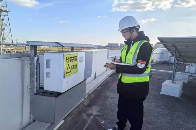 天色微明,運維組的成員們已整裝出發(fā)。頭戴安全帽,手持巡檢記錄本,借助接地搖表、紅外測溫儀等儀器在清晨的海風中細致排查光伏陣列的每一臺設備、每一處接線盒、每一根電纜。他們穿梭于成片的光伏板間,目光如炬,不放過任何一處細微的異常、任何一絲潛在的問題,并結(jié)合巡視檢查中發(fā)現(xiàn)的安全隱患第一時間進行消缺,確保設備可靠運行。每一次俯身檢查、每一組數(shù)據(jù)記錄,都關乎著港區(qū)綠色電力的穩(wěn)定輸出,關乎著新能源系統(tǒng)安全運行的底線。