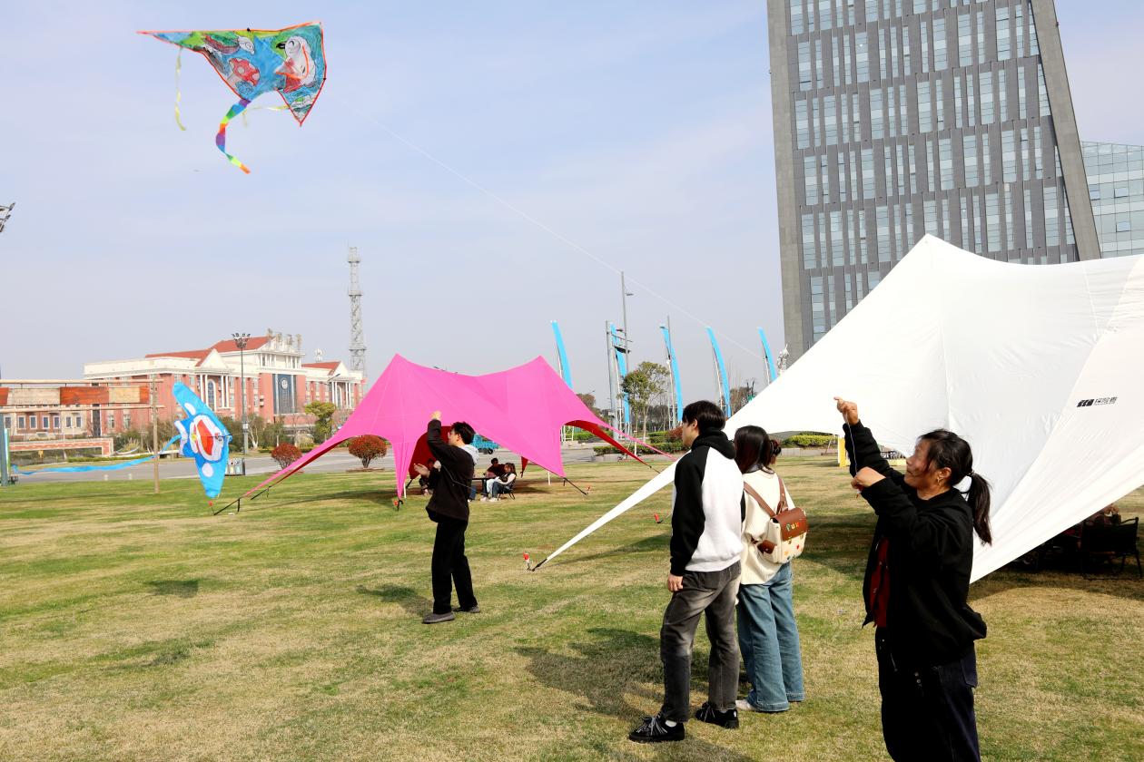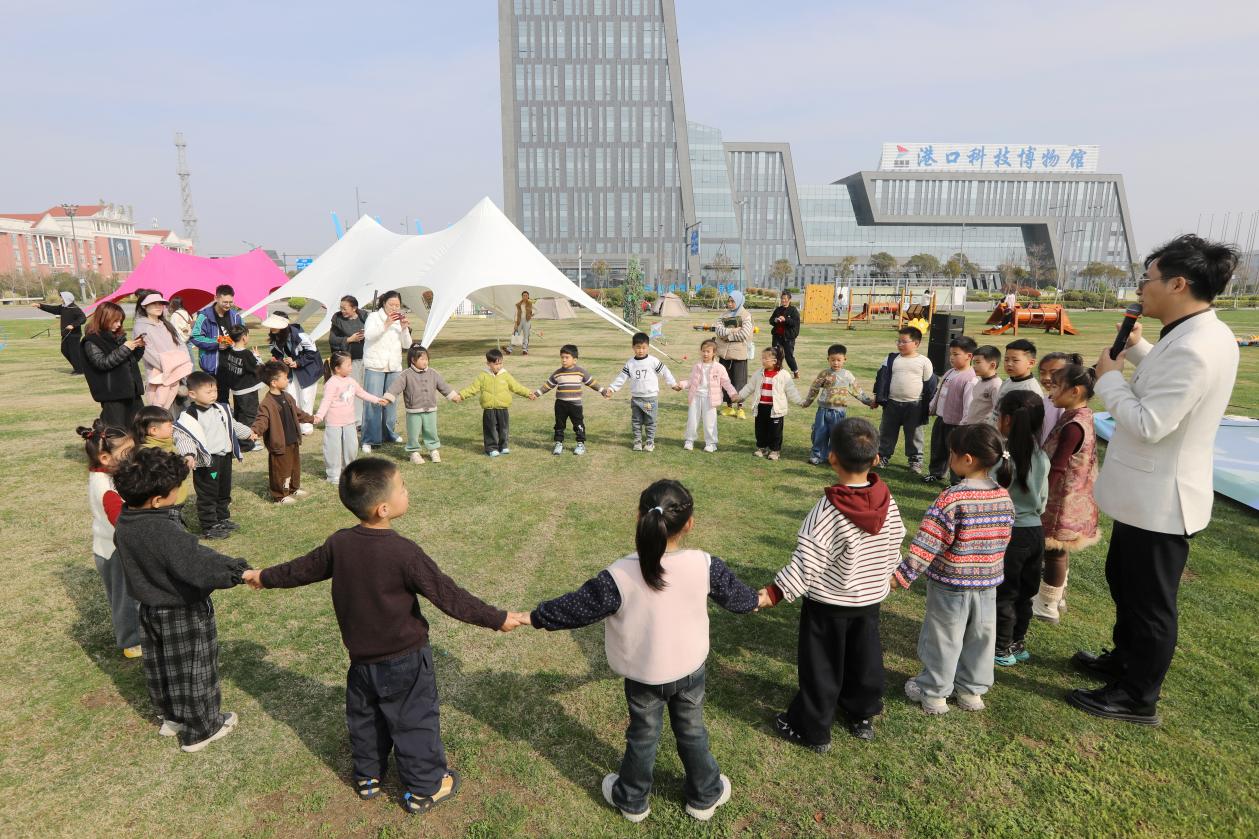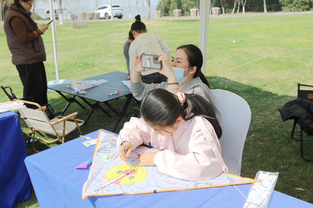 走進活動現(xiàn)場,春意撲面而來。主舞臺K歌區(qū)傳來陣陣歡唱,親子家庭輪番登臺參與春日K歌比賽,歌聲與笑聲交織成春日最動聽的旋律。草坪之上,孩子們手握畫筆,在空白風箏上描繪心中的春天,隨后牽著絲線在藍天白云間放飛。海風拂過,紙鳶與海浪遙遙相望,港口的春日圖景在這一刻生動定格。“孩子平時在城市里很少有機會這樣放風箏,今天在大豐港區(qū)跑一跑,感覺特別不一樣。”一位來自鹽城市區(qū)的家長說。