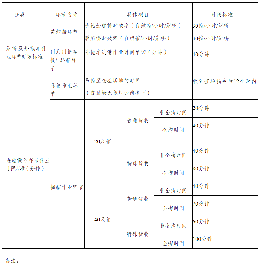 江蘇鹽城港上港國際港務有限公司作業時限標準