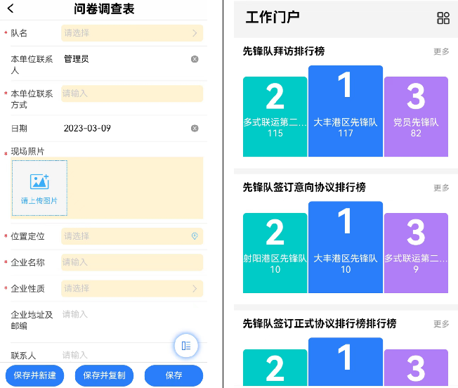 該系統(tǒng)集成了在線問卷、定位打卡、成果評比、統(tǒng)計(jì)分析等功能。與傳統(tǒng)的紙質(zhì)問卷相比,該系統(tǒng)減少了表格錄入、匯總上報(bào)、統(tǒng)計(jì)分析等環(huán)節(jié),實(shí)現(xiàn)了全過程無紙化、自動(dòng)化操作,極大地提高了工作效率。同時(shí),該系統(tǒng)還具備在線成果評比等功能,實(shí)時(shí)展現(xiàn)各先鋒隊(duì)工作成績,為進(jìn)一步激發(fā)各先鋒隊(duì)你追我趕的戰(zhàn)斗激情提供了技術(shù)支撐。