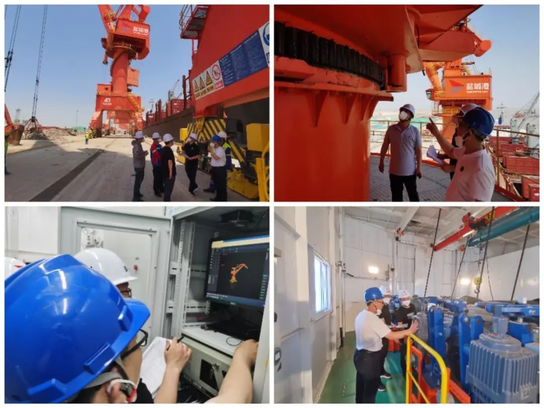 此次驗收的2臺門機可進行石灰石、煤碳等多貨種散貨裝卸作業,整體技術新、質量好、性能優,突出表現在:更環保。門機配套2臺負壓除塵料斗,可及時抑制現場裝卸貨物時所產生的揚塵,減少干散貨物料裝卸造成的污染,除塵率可達85%以上。更節能。門機配置了勢能回收系統,可把起重運行中的下降動能或勢能轉換成電能,并及時高效地回饋到電網,實現節能降耗,單臺門機每小時可節省用電200度,節能效果達到20%左右。更安全。門機還配置了大車行走風力自鎖防爬器,利用自鎖原理有效防范突發陣風的來襲,可有效防范45m/s以下突發陣風,提高設備的安全性能。