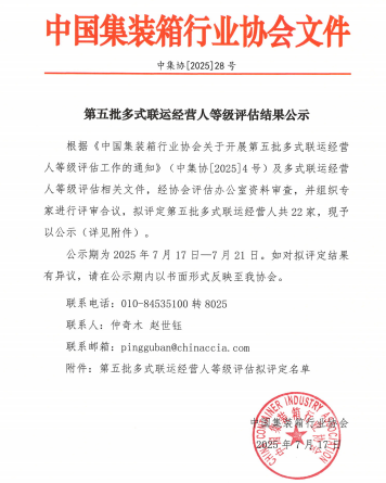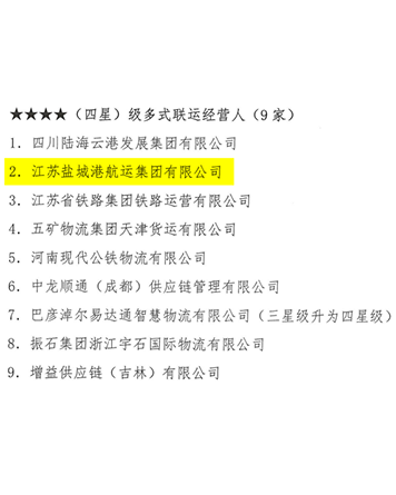 近日,中國集裝箱行業(yè)協(xié)會發(fā)布第五批多式聯(lián)運經(jīng)營人等級評估結(jié)果,歷經(jīng)資料審查、專家評審等多環(huán)節(jié)嚴(yán)格考核,江蘇鹽城港航運集團(tuán)有限公司(以下簡稱“航運集團(tuán)”)憑借卓越的綜合實力和服務(wù)水平,成功獲評“四星級多式聯(lián)運經(jīng)營人”稱號。