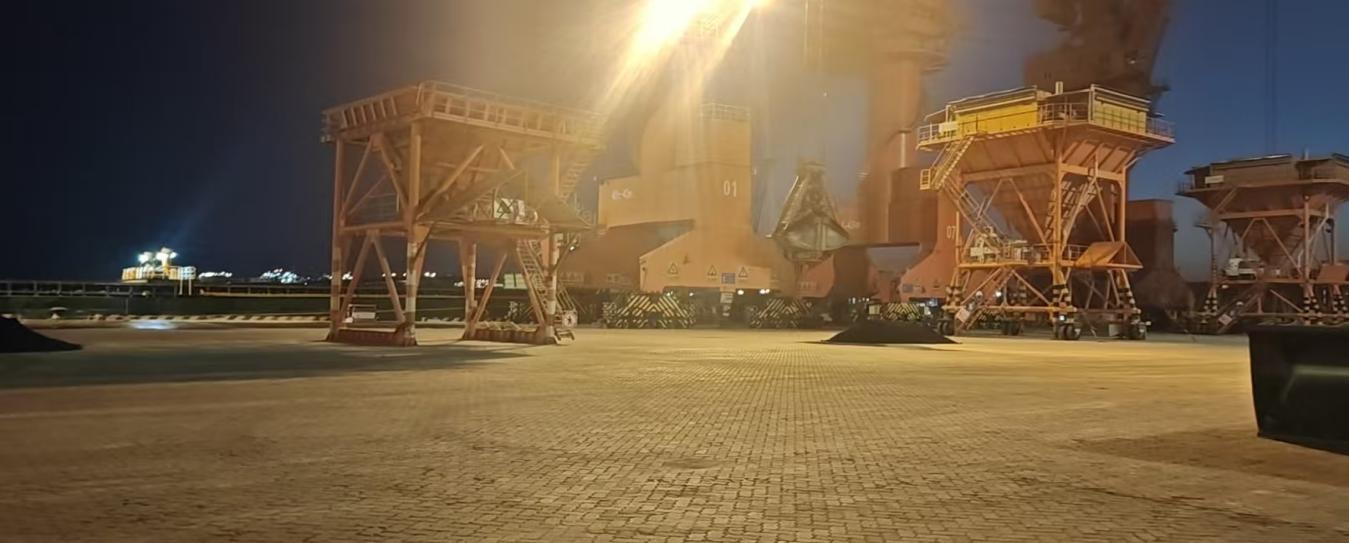 船舶抵港前,現(xiàn)場調(diào)度人員根據(jù)實地實情統(tǒng)籌協(xié)調(diào),對泊位前沿、堆存場地等做到全流程銜接;生產(chǎn)運營負(fù)責(zé)人積極聯(lián)系海關(guān)、海事等口岸單位優(yōu)化通關(guān)流程,為貨物快速通關(guān)開辟綠色通道;卸貨前,門機司機及時查驗抓斗作業(yè)精準(zhǔn)度和作業(yè)穩(wěn)定性;針對石油焦易揚塵等特點,設(shè)置專用隔離區(qū)域,同步啟用噴淋降塵系統(tǒng),在卸船、轉(zhuǎn)運、堆存各環(huán)節(jié)實施全程濕法作業(yè),全過程實現(xiàn)“零污染、零損耗、零事故”。