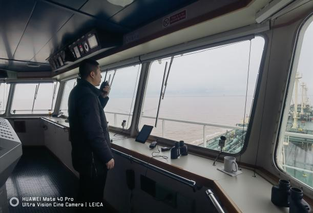 引航團(tuán)隊為保障航行安全,提前半小時從碼頭出發(fā)登輪,熟悉掌握該船舶的操縱性。