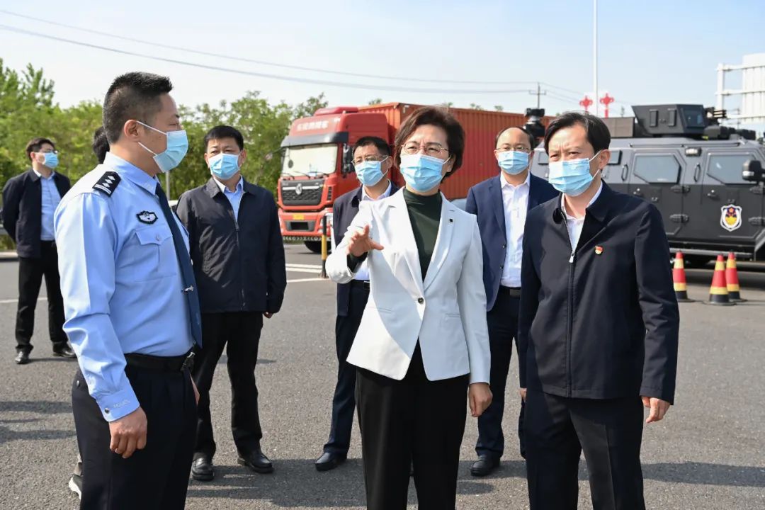 在阜溧高速阜寧出口,一輛輛大貨車按照疫情防控要求快速有序通過。徐纓來到查驗點詳細詢問駕乘人員查驗登記流程和核酸檢測措施,檢查路網保通保暢情況。她指出,要全面優化各項防控措施,科學有序做好交通疏導,為司乘人員提供貼心暖心服務,堅決防止和避免出現大面積擁堵和長時間等候,全力保障生產生活重要物資運輸通暢。