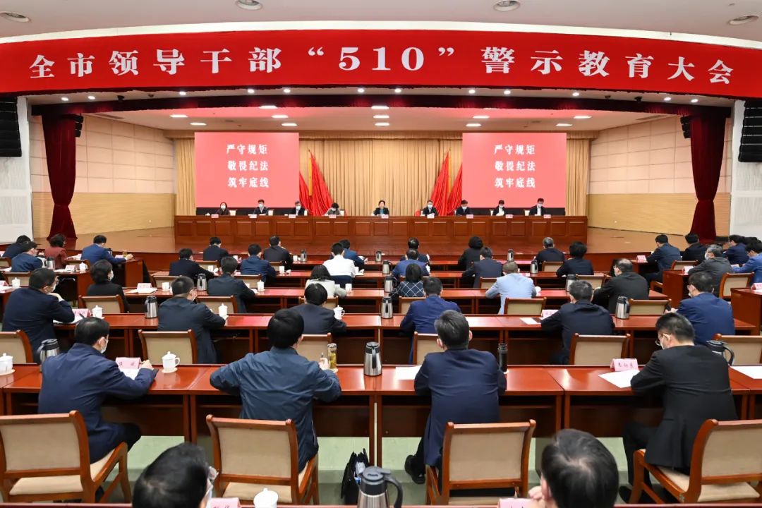 5月10日,市委召開(kāi)全市領(lǐng)導(dǎo)干部“510”警示教育大會(huì),堅(jiān)持以習(xí)近平新時(shí)代中國(guó)特色社會(huì)主義思想為指導(dǎo),深入貫徹落實(shí)全面從嚴(yán)治黨要求,以案釋德、以案釋紀(jì)、以案釋法,進(jìn)一步增強(qiáng)黨員干部、國(guó)家公職人員廉潔自律意識(shí),全力營(yíng)造風(fēng)清氣正、干事創(chuàng)業(yè)的良好政治生態(tài),為勇當(dāng)沿海地區(qū)高質(zhì)量發(fā)展排頭兵、奮力譜寫(xiě)“強(qiáng)富美高”新鹽城現(xiàn)代化建設(shè)新篇章提供堅(jiān)強(qiáng)保障。市委書(shū)記徐纓出席并講話,市委副書(shū)記、市長(zhǎng)周斌主持,市政協(xié)主席陳紅紅、市委副書(shū)記羊維達(dá)出席。