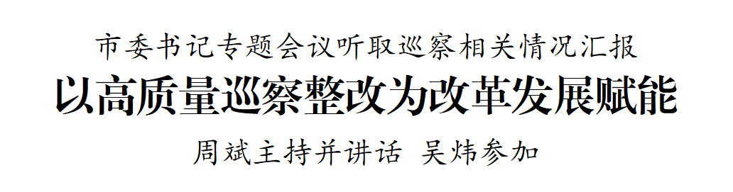 7月10日,市委書記周斌主持召開市委書記專題會議,深入學(xué)習(xí)領(lǐng)會習(xí)近平總書記關(guān)于黨的自我革命的重要思想和巡視工作的重要論述,聽取八屆市委第七輪巡察、第三輪巡察整改督查評估和近幾輪巡察整改日常監(jiān)督情況匯報,研究下一階段巡察工作。市委副書記吳煒參加。