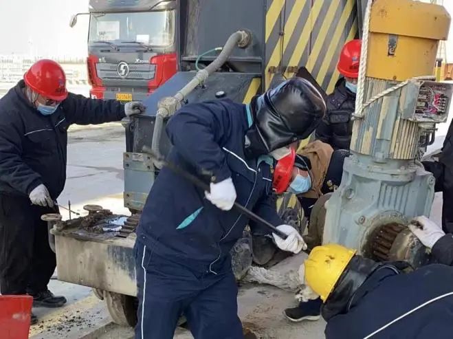 找實挖深,健全睹微知著的機制。射陽港區風電公司充分利用此次春檢,嚴格實行整改閉環管理。檢維修人員嚴格按兩票制度作業,邊查邊改,精密施工。目前,碼頭7#門機主鋼絲繩更換、門機行走減速機、更換變幅剎車片等檢修工作進展順利,并以“把問題找實,把問題挖深”為指導思想,高效安全處置現場源點26項,有效提升了射陽港區的安全作業可靠性。