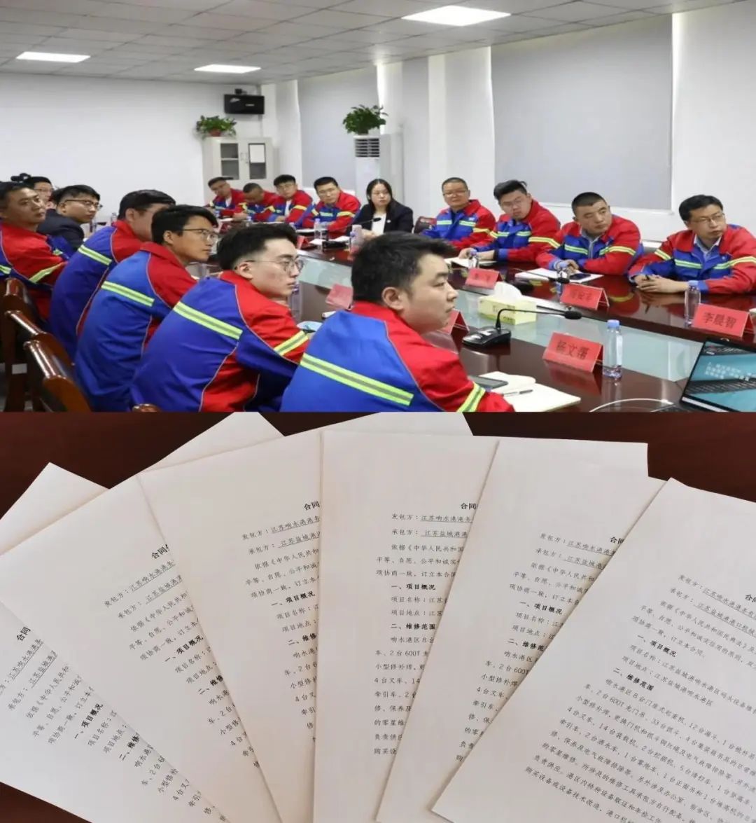 響水港區(qū)與港機(jī)公司進(jìn)行商談、簽訂年度維保合同