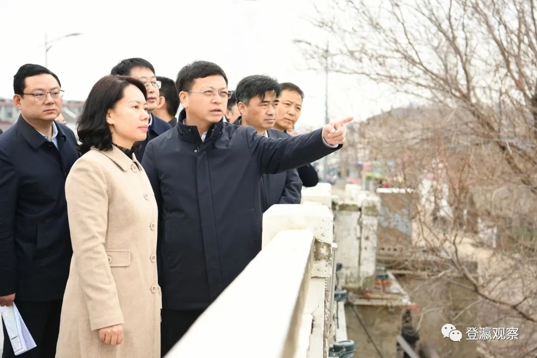 ▲市長曹路寶察看鹽都區(qū)龍岡鎮(zhèn)鳳凰橋航段現(xiàn)場