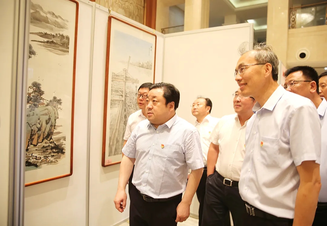 晚會開始前,周正雄還帶領與會人員參觀了集團職工書畫展。本次書畫展參展作品內容豐富,形式多樣,立意新穎,用書畫定格歷史瞬間,串聯(lián)起波瀾壯闊的百年征程,呈現出個性獨特的藝術魅力,蘊含著飽滿熾熱的藝術激情,具有較強的藝術震撼力,受到了大家的一致好評。