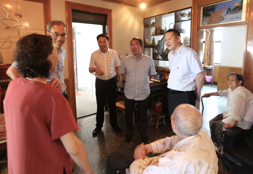 在建國(guó)前入黨老黨員奚正銀老人家中,陳正華看到97歲的老人身體硬朗、精神矍鑠,感到十分高興。他握著老人的手認(rèn)真詢問老人的生活及兒女就業(yè)工作情況,并為老人戴上“光榮在黨50年”紀(jì)念章,送上慰問金,感謝他長(zhǎng)期以來為黨和國(guó)家作出的積極貢獻(xiàn),并囑咐他保重身體。同時(shí),陳正華還要求隨行青年黨員積極向老同志學(xué)習(xí),定期上門開展志愿服務(wù)活動(dòng),陪伴老黨員、傾聽他們?cè)?jīng)的故事,在向革命前輩學(xué)習(xí)革命精神的同時(shí),將黨最新的方針政策、會(huì)議精神及時(shí)傳達(dá)給老黨員。