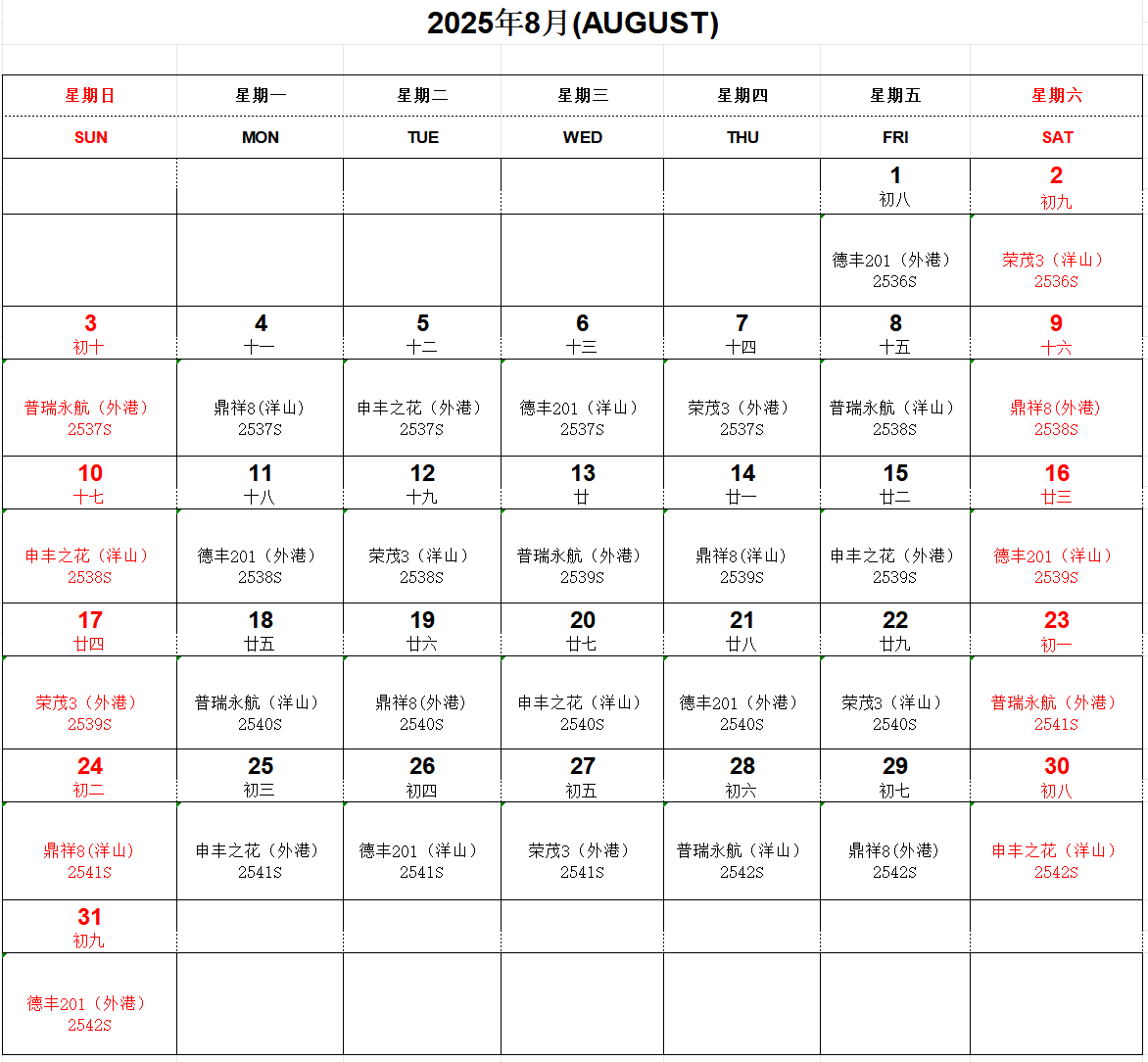 “滬鹽專線”8月船期表已經新鮮出爐!