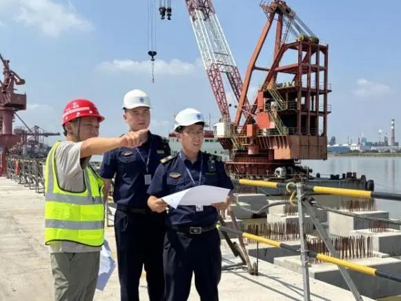 “臺風‘竹節(jié)草’逼近,立即啟動應(yīng)急預(yù)案!”7月30日夜,調(diào)度室的急促電話劃破寂靜。防臺防汛領(lǐng)導(dǎo)小組全員到崗,通過“船岸協(xié)同”機制將施工船舶拖至避風港。安全總監(jiān)手持應(yīng)急燈,沿著濕滑的碼頭仔細巡查,每隔一小時便記錄下浪高的數(shù)據(jù),靴中積水與汗水交織。