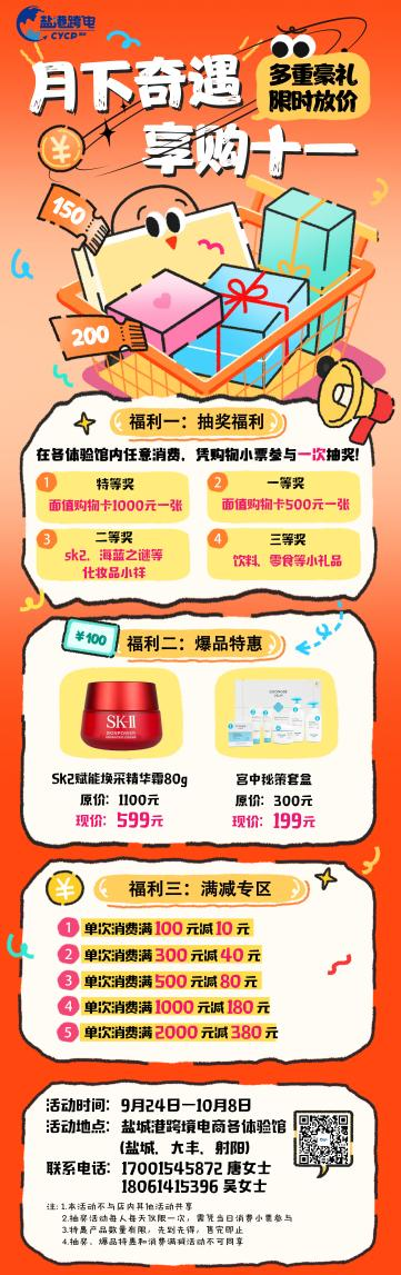 莎士比亞跨境電商國(guó)際商貿(mào)小鎮(zhèn)將于2025年9月24日至10月8日推出以“月下奇遇,享購(gòu)十一”為主題的系列促銷活動(dòng)。活動(dòng)期間,消費(fèi)者可在鹽城、大豐、射陽三地的跨境電商體驗(yàn)館享受多重福利:消費(fèi)即可參與100%中獎(jiǎng)抽獎(jiǎng),獎(jiǎng)品涵蓋千元購(gòu)物卡、熱門美妝小樣等;單筆消費(fèi)滿100元起即可參與多檔滿減優(yōu)惠,最高立減380元;更有爆款單品直降促銷,如SK2賦能煥采精華霜由原價(jià)1100元優(yōu)惠至599元,誠(chéng)意回饋顧客。本次活動(dòng)通過線上線下多渠道聯(lián)動(dòng)宣傳,并提前備足貨源、優(yōu)化服務(wù)流程,力求為消費(fèi)者帶來優(yōu)質(zhì)、便捷的購(gòu)物體驗(yàn),進(jìn)一步激發(fā)節(jié)日消費(fèi)市場(chǎng)活力。