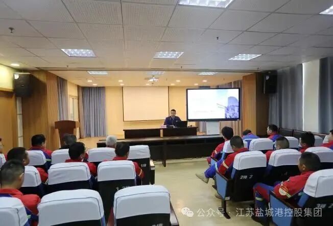 港區消防中隊隊長結合港口碼頭、倉儲物流行業的典型火災案例,深入剖析了秋冬季節用火用電不當、易燃貨物管理不善等問題的嚴重后果,傳授了實用的消防安全管理知識和應急響應流程,同時結合公司實際,解答員工提出的消防管理、器材使用、應急處置等問題,針對性給出改進建議。
