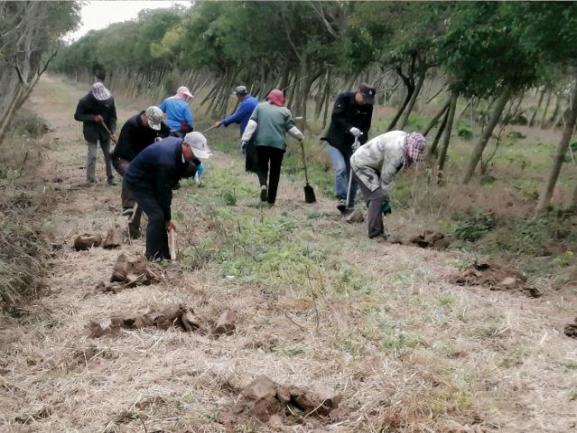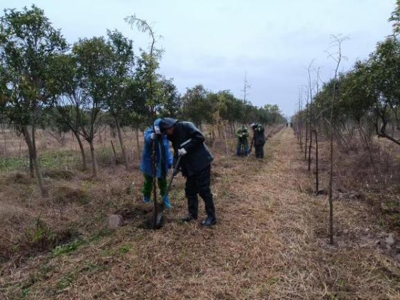 植樹現(xiàn)場,一派熱火朝天的勞動景象。大家分工協(xié)作、默契配合,有的揮鍬鏟土,有的扶苗定植,有的提水澆灌,每個環(huán)節(jié)都認真細致、有條不紊。經(jīng)過三個多小時的辛勤勞動,300余株白榆和水杉苗木在此落地生根。