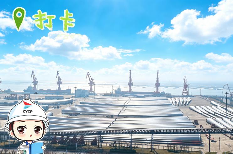 轉身就是堆場“地標”,巨大的風電葉片整齊排列,它們是綠色能源的白色羽翼,靜待遠航;環顧四周是如綠色屏障般矗立著的防風抑塵網,致力將粉塵牢牢鎖住,兌現對藍天的承諾。